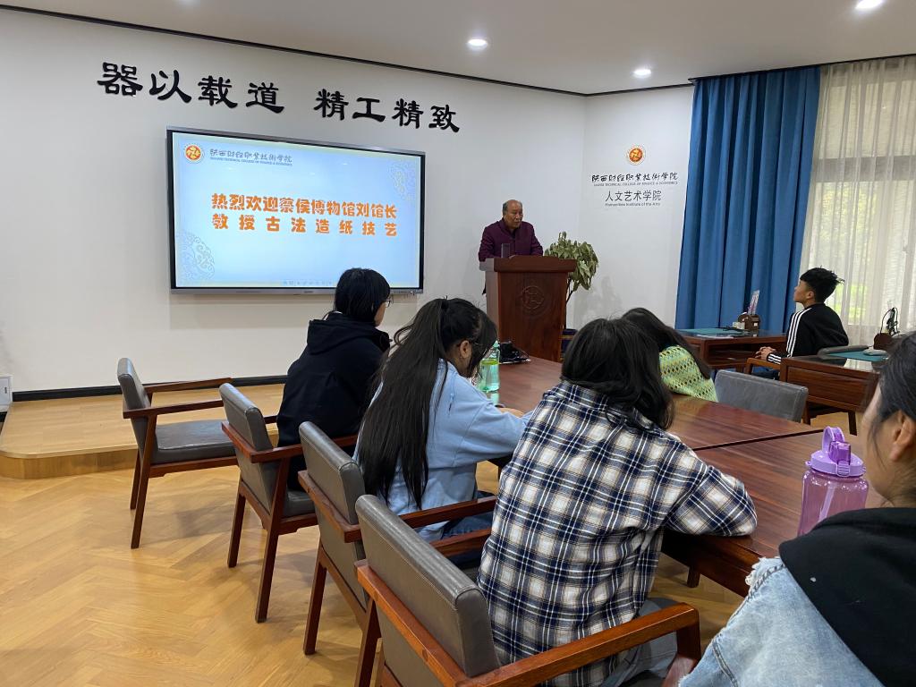 为加强非遗传承和保护,弘扬中华优秀传统文化,增强文化自觉、坚定文化自信,工艺美术品设计专业本学期开设《地方传统工艺概述》课程,将定期邀请陕西省非遗传承手工艺人进校园进行授课。3月17日,蔡侯纸博物馆刘晓东馆长及其团队为学生讲授古法造纸技艺,并现场进行教学演示。