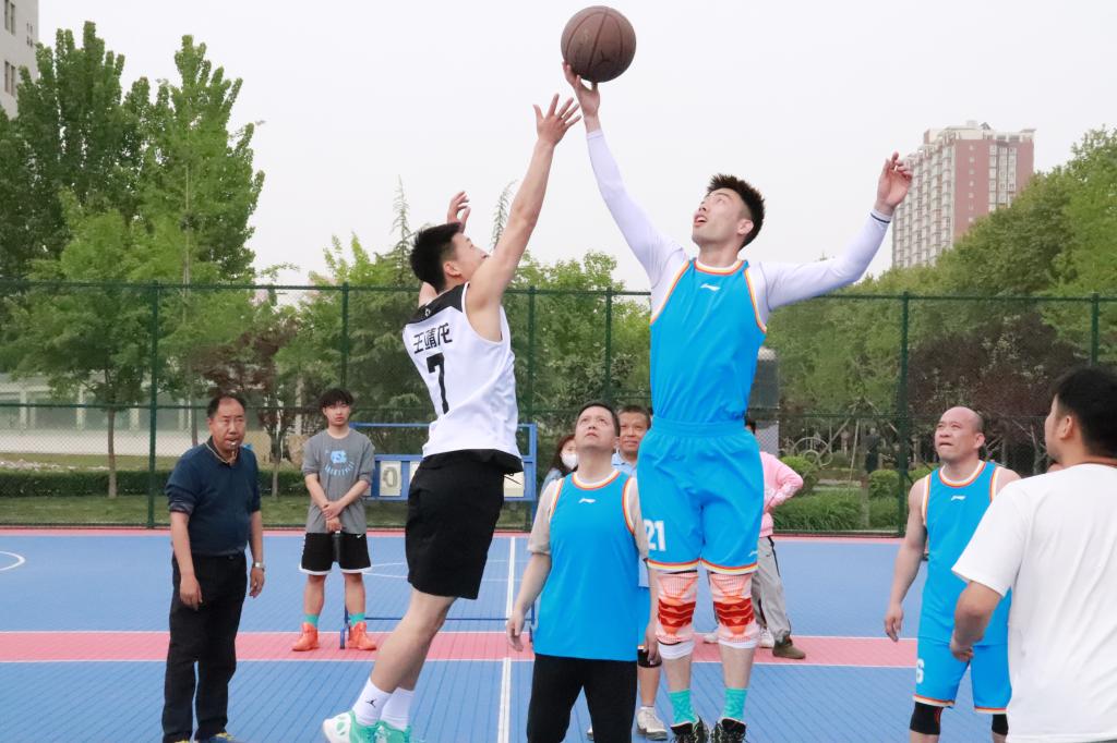 4月15日下午,我院在学院篮球场举办庆祝建党100周年师生篮球友谊赛。