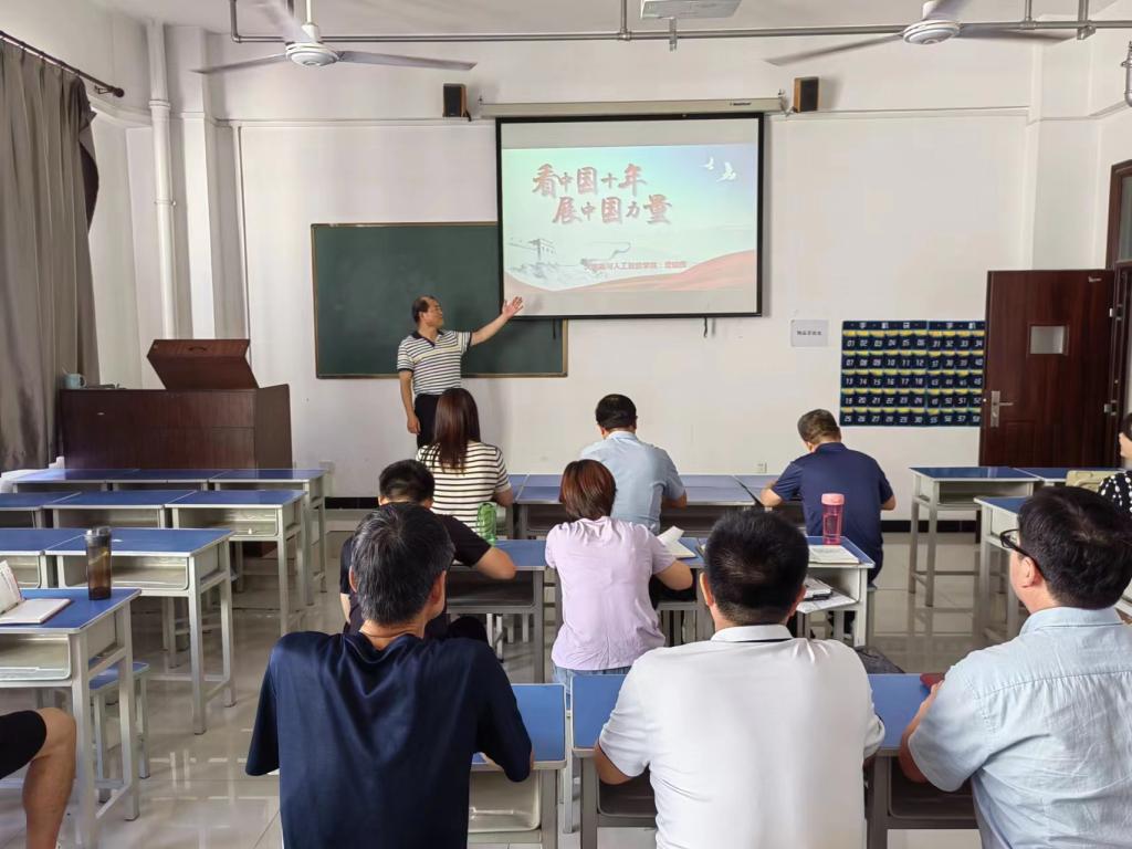 7月6日下午,大数据与人工智能学院党总支书记曹耀辉为全体党员作“看中国十年 展中国力量”专题党课宣讲,全体党员参与专题研讨。