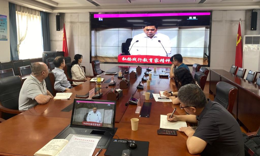 会上,全体参会人员线上参加陕西省“弘扬践行教育家精神行动年”启动会,共同观看直播视频。教育部教师工作司副司长韩劲红通过视频作讲话,对教育家精神进行了解读;省委教育工委副书记、省教育厅厅长王树声出席会议并讲话,对“弘扬践行教育家精神行动年”工作进行了安排部署;渭南市教育局局长马俊玲、陕西师范大学副校长董治宝、安康中学教师张莎莎等先后作交流发言。