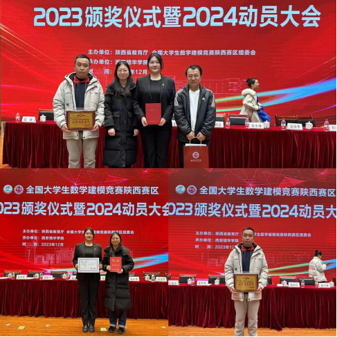 12月15日,由陕西省教育厅、全国大学生数学建模竞赛陕西赛区组委会主办的2023全国大学生数学建模竞赛陕西赛区颁奖仪式暨2024动员大会在西安培华学院隆重举行。陕西省教育厅高教处副处长杨国清,全国组委会专家组副组长、陕西赛区评阅中心组成员周义仓,西安培华学院常务副校长胡俊生,陕西赛区组委会委员、陕西省工业与应用数学学会副理事长蔺小林等出席会议。我校大数据与人工智能学院教师杨光、师铭、党琪带领获国家二等奖的学生代表任毓杰参加了颁奖典礼。我校学子在本届大赛中获得全国二等奖1项,陕西赛区一等奖1项、二等奖12项,杨光老师获评陕西赛区“优秀指导教师”。
