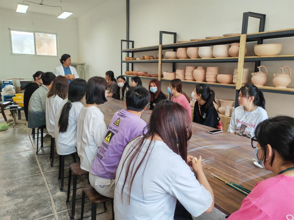 为了进一步加强立德树人,提升学生文化修养及审美情趣,培养学生弘扬精益求精的工匠精神,人文艺术学院于2022年5月17日至5月20日院持续开展“大师进校园活动”,特邀咸阳市工艺美术协会会长,省级工艺美术大师刘伟来校为工美学生学生讲解国家非物质文化遗产陨石釉相关知识,课堂上学生们亲自动手参与制作,切身体验艺术与美的融合。