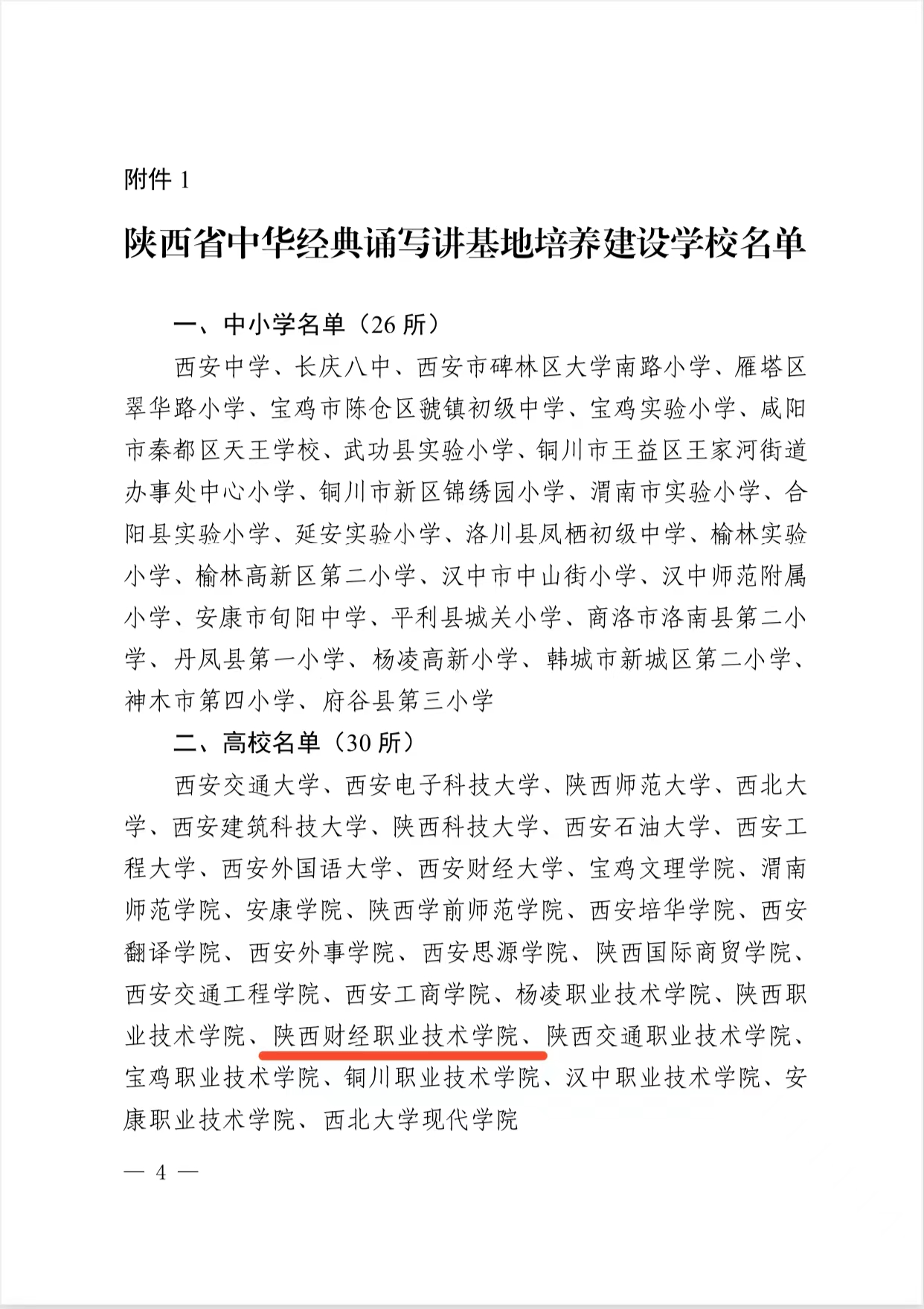 陕西省中华经典诵写讲基地培养建设学校名单