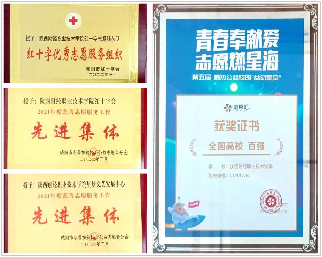 近期,共青团中央、咸阳市红十字会、咸阳市慈善扶贫协会公益志愿者分会等单位对全国各省市单位2021年度志愿服务工作进行表彰,我校荣获第五届最热公益校园“益动星空”全国百强荣誉称号、咸阳市“红十字优秀志愿服务组织”荣誉称号,我校学生会志工部下设机构红十字会、星梦文艺发展中心分别荣获咸阳市2021年度慈善志愿服务工作“先进集体”。