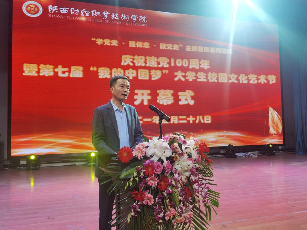 4月28日下午,我院团委在大礼堂成功举办了“学党史· 强信念· 跟党走”主题系列教育之庆祝建党100周年暨第七届“我的中国梦”大学生校园文化艺术节开幕式。学院副院长张秦龙出席活动,学生处处长乔晶策、学生处副处贺适、用友·新道会计学院副院长缑宇英、大数据与人工智能学院党总支书记曹耀辉、团委书记窦曼娟,以及全院团干部和师生代表共计1400余人参加了活动。